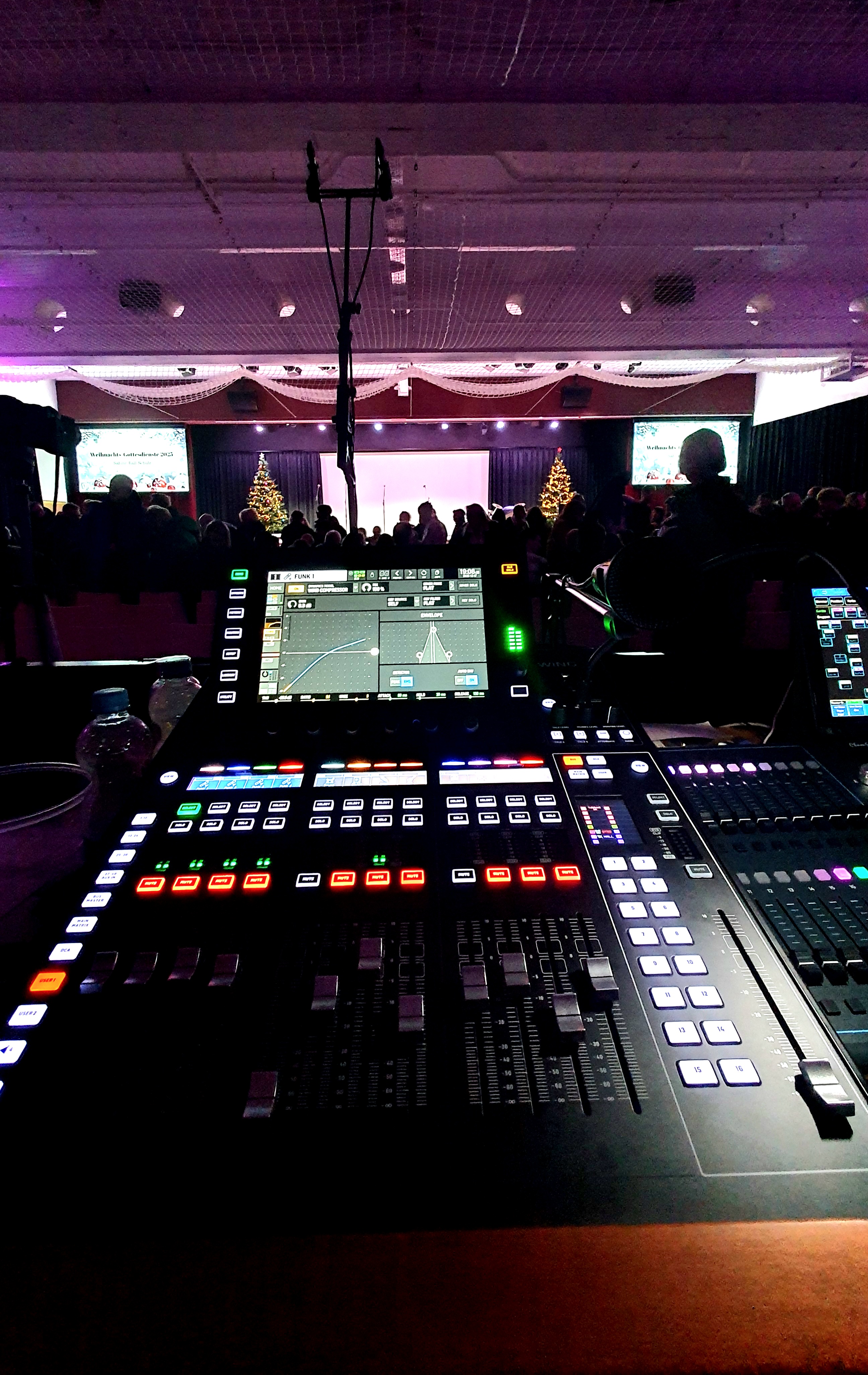 Für Gottesdienste oder Konzerte sorgen wir mit klarer Beschallung, dezenter Beleuchtung und Livestream für eine besinnliche und feierliche Atmosphäre.